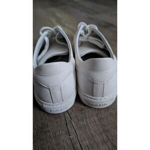 The product is a pair of minimalist white Italian leather sneakers from the brand Axel Arigato in size US 7, UK 6, and EU 39. These casual sneakers feature a sleek design with a leather upper and insole, making them comfortable and stylish for everyday wear. The Italian theme and high-quality leather construction add a touch of luxury to these versatile sneakers, perfect for anyone looking for a chic and on-trend footwear option.