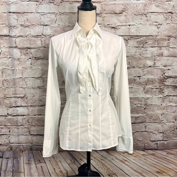AXEL'S White Size 40/10 Collared Pleated Long Sleeve Button Up Blouse It…