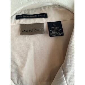 AXIST silk blend (58% silk / 42% cotton) men's shirt. It has short sleeves and a button front. It is a washable silk. 2 front pockets chest. Size X-Large