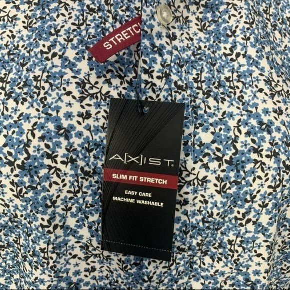 A(X)IST AXIST Parisian Blue Slim Fit Stretch Button Down Shirt Size Small S