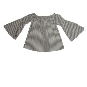 AXXESS striped bell ruffle sleeve off shoulder top blouse S