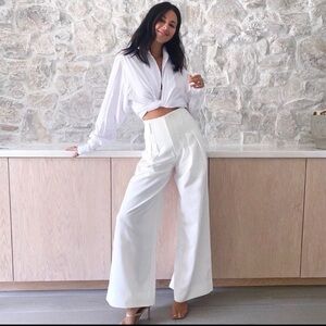 AYA MUSE Ivory Wide Leg Linen Blend Trousers