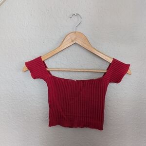 Stylish red ribbed off-shoulder top. Perfect for casual outings. No signs of wear.
