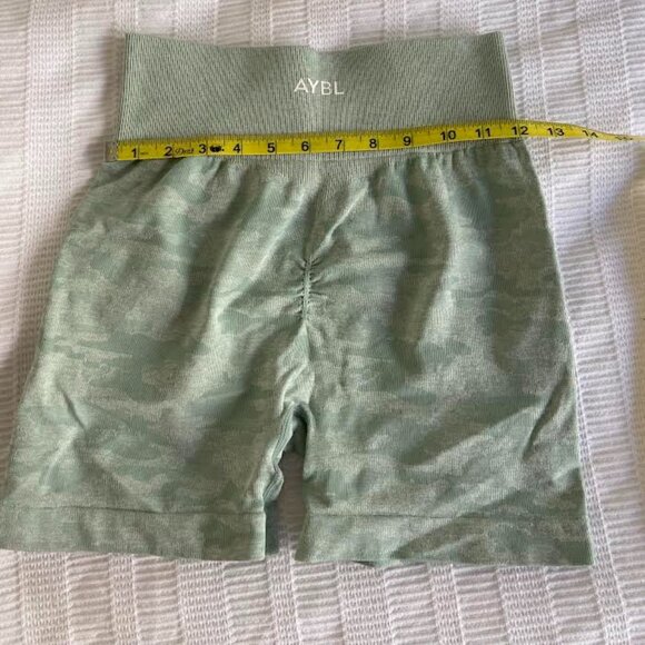 AYBLE Mint Green Camo Biker Shorts. Size M.