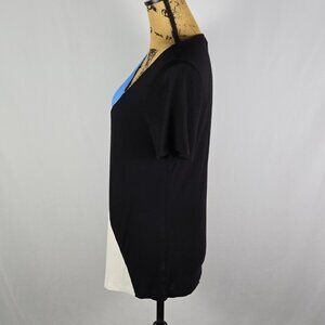 AYIFU Retro Pop Art Colorblock Tunic Blue Black White Asymmetrical Top M