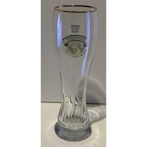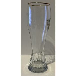 Experience the traditional German brewery aesthetic with this elegant AYINGER .5L Gold Rim Swirl Base Beer Weizen Glass. Crafted in Germany, the glass showcases a classic swirl base design, complemented by a sophisticated gold rim, making it a standout addition to any beer glass collection or Breweriana ensemble.