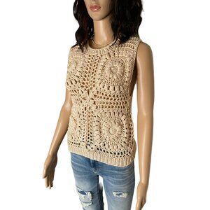 AYNI 100% Pima Cotton Crochet Crewneck Sleeveless Sweater Cream Size S