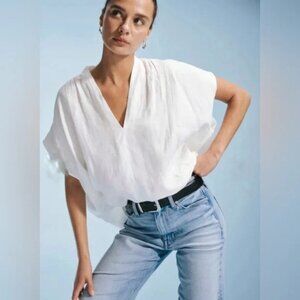 AYR 100% Linen Cap Sleeve Boxy Blouse the Flow? in White Oversized M