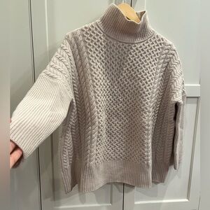 AYR Ivory Le Square Kable Knit Mock Neck Sweater Size Small 100% wool
