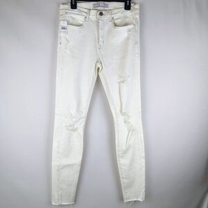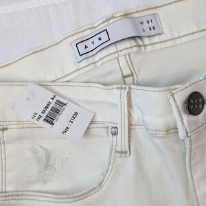 AYR Jean Skinny Stretch Ankle High Rise Distressed Ripped Zip Fly White 31 NWT