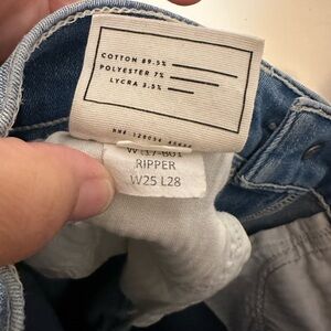 AYR Jeans Womens 25x28 Light Blue Raw Hem Skinny Leg Pockets Stretch Mid Rise