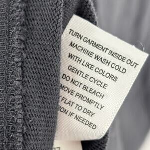 A long sleeved, mock necked, easy wearing and layering shirt for when you need to dress up just a step up from your everyday t-shirt. Kinda genius. Long sleeves. Pulls on. Color is between a navy blue and washed black. Cotton. Machine wash. In preowned condition.