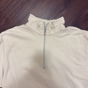 Chic off-white quarter-zip pullover. Ideal for everyday comfort.