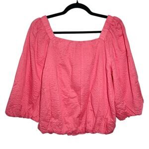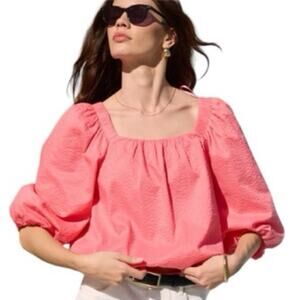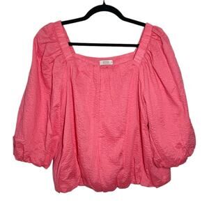 AYR Pink Cotton Square Neck Puff Sleeve Midsummer Top Medium