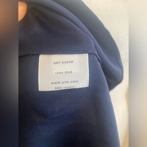 AYR Navy Silk Pleated Waist Ruched Long Sleeve Blouse size M