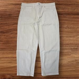 AYR The Beat Drop Cropped Barrel Leg Jeans Womens Size 34 Straw Hat Beige 38x27