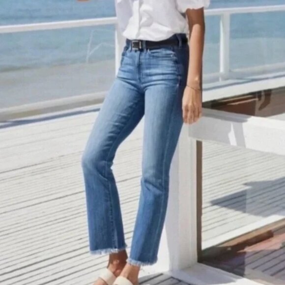 AYR The Bomb Pop Jeans Straight Leg with Raw Hem in Bomba Wash. In lovely pre-owned condition with no noticeable flaws!