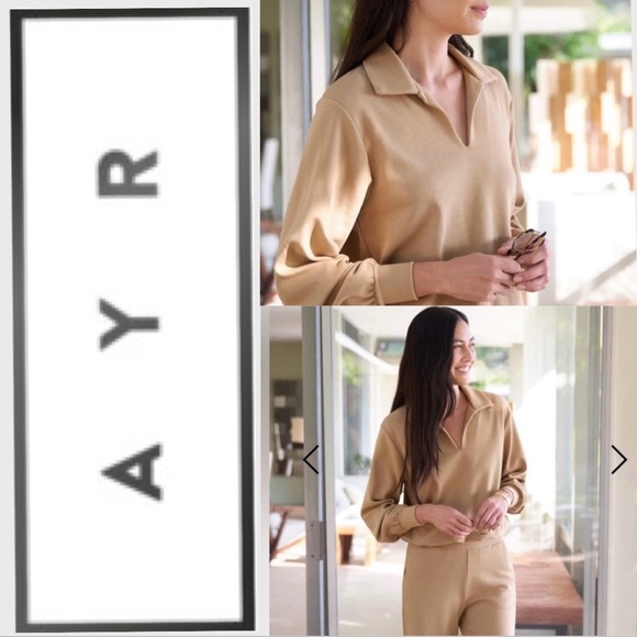 AYR The Courtside Tan Long Sleeve Polo Shirt Biscuit, S