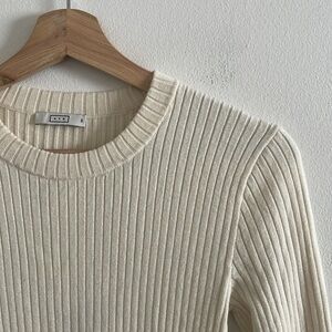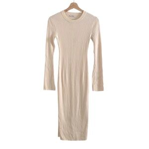 AYR The Crowd Pleaser Ribbed Knit Midi Dress Women’s Size XS Long Sleeve Cream