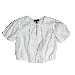 AYR The Puff Puff Blouse Bubble Hem white crinkle size XS cropped short sleeve