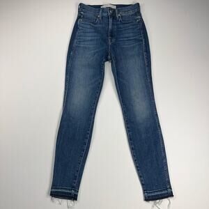 AYR The Riser Skinny High Rise Ankle Jeans Raw Hem Neon Jupiter Wash Size 27