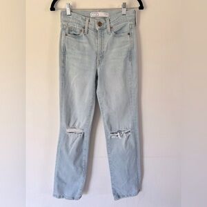 AYR The Sugar High Rise Straight Leg Light Wash Distressed Denim Ankle Jeans