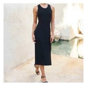 AYR The Vava Black Ribb Midi Dress Size XS Criss Cross Back Stretch Quiet Luxury