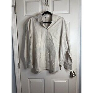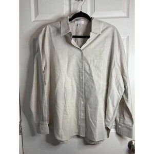 AYR Women's Blue Stripe Long Sleeve Button Down Shirt Cotton XL Beige Casual Top