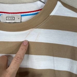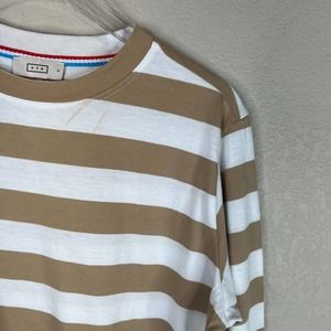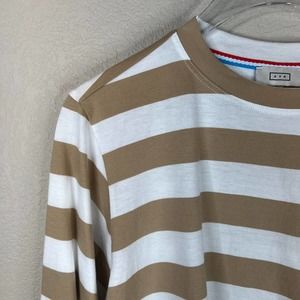 AYR Women's Pima Cotton Striped Slushy T-Shirts Long Sleeve Tan/White Size S
