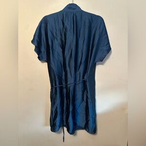 AYR Wrap Robe Dress Teal Satin Tie Waist Collar Short Sleeve Mini Size Small