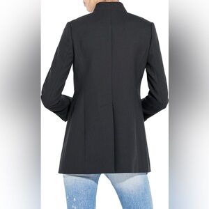Run a board meeting or run errands in this longline jacket expertly made from stretch Italian fabric that goes with just about everything in your closet. Slim notches along the open front update the refined yet edgy look.