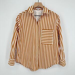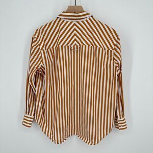 • Up for sale - AYR top womens small the deep end button down shirt aperitif stripe oversized blouse casual white burnt orange classic versatile work office everyday minimalist capsule wardrobe fall pocket collared