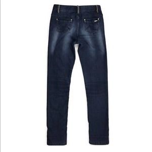 A.Yilian Womens Jeans Sandblasted & Whiskering, Skinny Fit, Ankle Grazer, Dark Wash, Can Be Worn Cuffed or Uncuffed, Metallic Thread