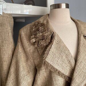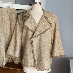AZADEH San Francisco Tweed Jacket & Pleated Skirt Suit 2 pc Fringe Size XL 12
