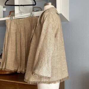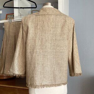 AZADEH San Francisco Tweed Jacket & Pleated Skirt Suit 2 pc Fringe
