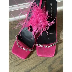 AZALEA WAN FEATHER SANDAL IN FUCHSIA BARBICORE PINK FEATHER HEEL Size 10