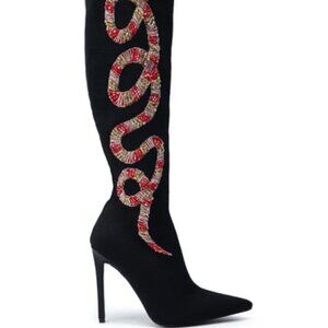 AZALEA WANG" CALCULATED COBRA " BLACK EMBELLISHED SNAKE BOOT(BRAND NEW !!!!!!!!