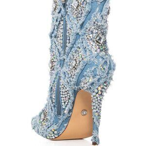 AZALEA WANG " DENIM DYNASTY " DENIM EMBELLISHED BOOTIE( BRAND NEW !!!!!!!