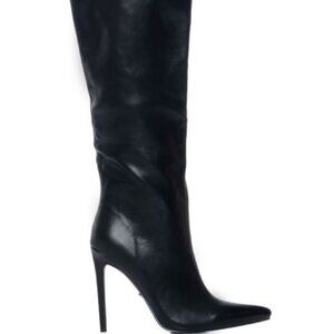 AZALEA WANG "DOING THE MOST"FEATHER EMBELLISHED KNEE HIGH BOOT/BLACK(BRAND NEW!!