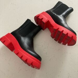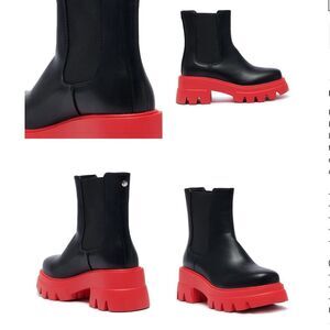 AZALEA WANG LINDIE Chelsea Faux Leather Black Red Lug Sole Boots Size 6
