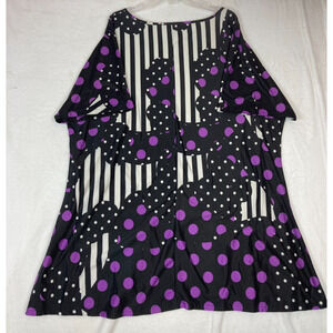 AZALEA by Firmiana Women’s Tunic Top Sz 3X Short Sleeve Blk w/Purple White Dots