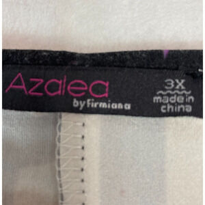AZALEA by Firmiana Women’s Tunic Top Sz 3X Short Sleeve Blk w/Purple White Dots 95% polyester 5% spandex good used condition see photos for details and measurements