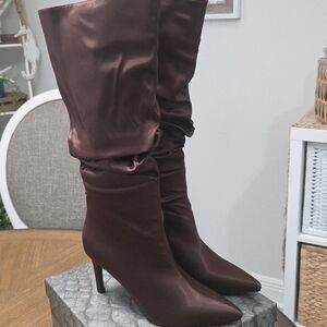 AZALEA WANG Chocolate Brown Nylon Tall Slouchy Knee High Stiletto Boots, NIB