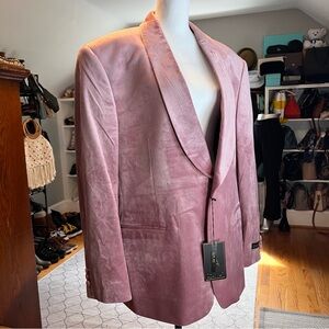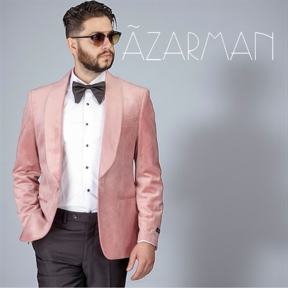 AZARMAN Slim Fit 1 Button Pink Pastel Velvet Shawl Dinner Jacket Sz 48 S