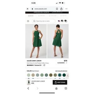 The AZAZIE A-Line Pleated Chiffon Dress in dark green, size small, is a stunning dress perfect for special occasions like weddings, parties, or formal events. The dress features a sleeveless design with a halter neckline and strappy sleeves, made from luxurious polyester chiffon fabric. The pleated accents add a touch of elegance to the A-line silhouette, making it a classic and colorful choice for the summer, fall, or spring seasons. This dress from the Azazie brand is sure to make a statement and turn heads wherever you go.