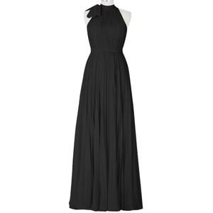 Cailyn is an elegant floor-length bridesmaid dress in an A-line cut. Cailyn features vertical pleats with a halter neckline and a romantic bow.