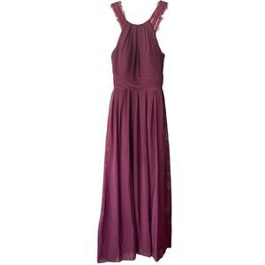 AZAZIE COLLEEN A-Line Lace Chiffon Floor-Length Burgundy Bridesmaid Dress Size 2