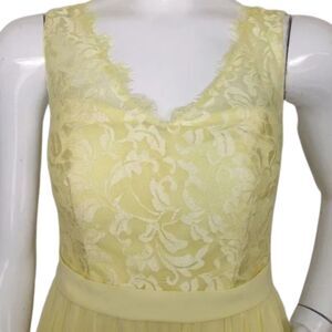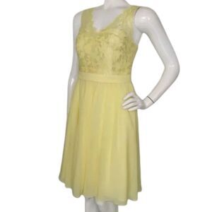 AZAZIE Dress, XS. Yellow, Lace Bodice, Flowy A-line, Wide Straps, Knee length