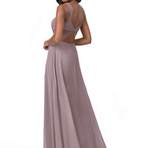 A-Line Pleated Chiffon Floor-Length Dress in the color Dusk