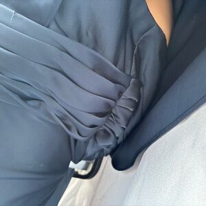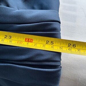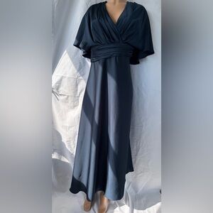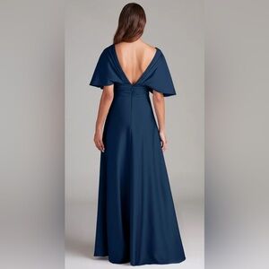 This elegant blue gown by Azazie features a flattering v-neckline and delicate short flutter sleeves, perfect for a wedding guest or cocktail event. The flowing maxi skirt offers a graceful silhouette, making it a timeless choice for any formal occasion. Pamela will make you feel like a Greek goddess! The delicate sleeves flow down to the elbows, while the V-neck and pleated bodice make it universally flattering. The stretch satin bridesmaid dress flares out from the waist and falls to the floor in a cascade of folds.